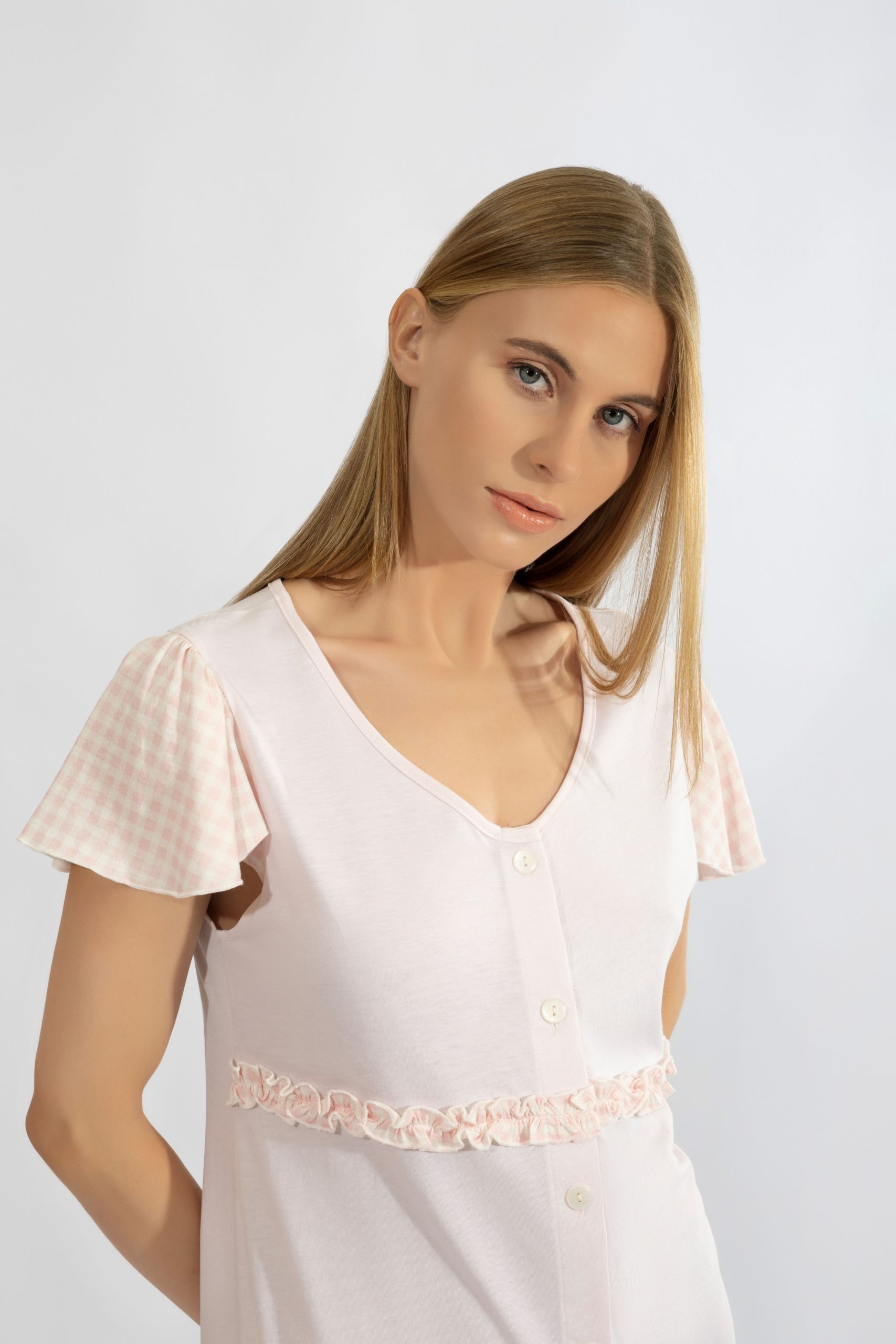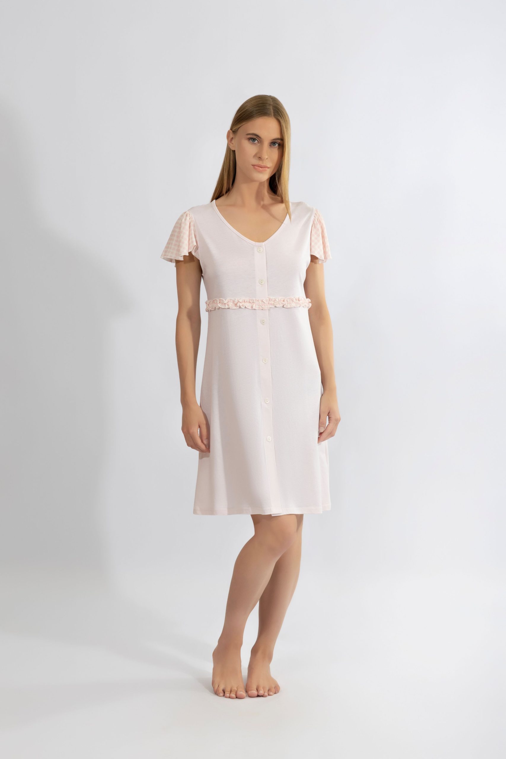 Harmony Ροζ Καλοκαιρινό Βαμβακερό/Modal Νυχτικό με Κοντό Μανίκι