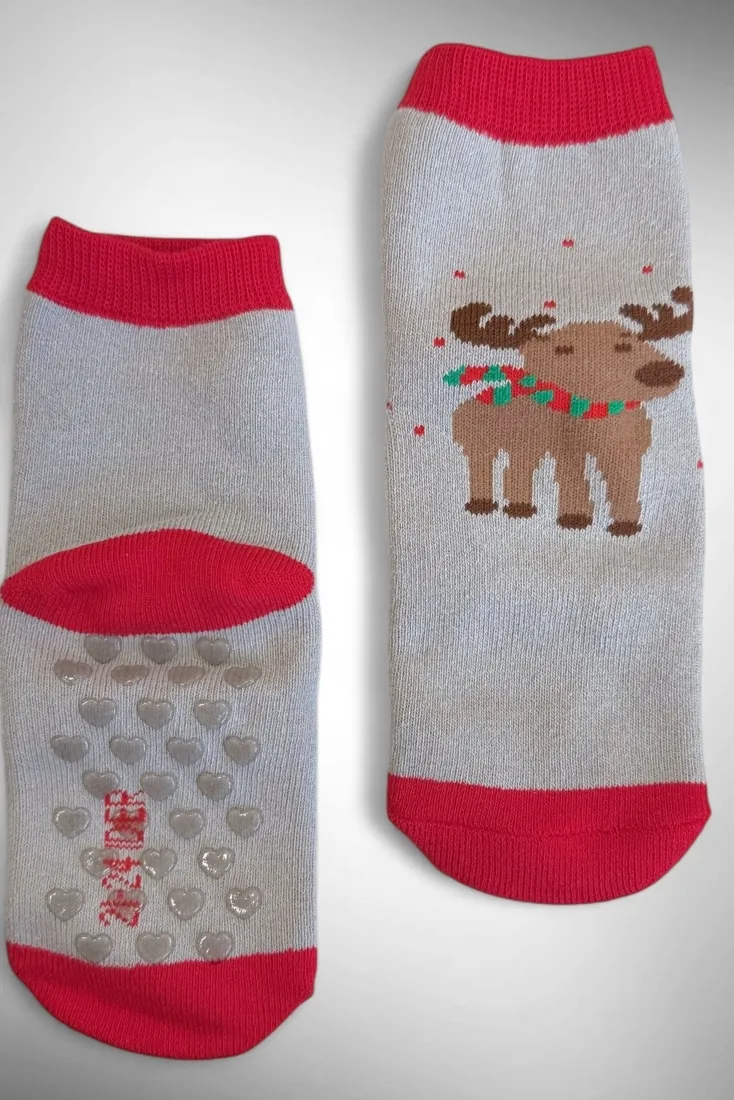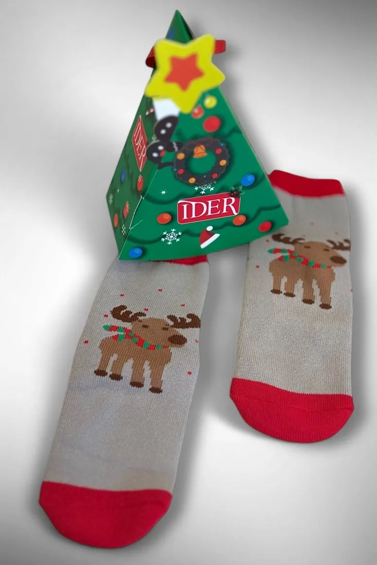 IDER Γκρι Χριστουγεννιάτικη Παιδική Βαμβακερή Κάλτσα με Αντιολισθητική Πατούσα σε Συσκευασία Δώρου