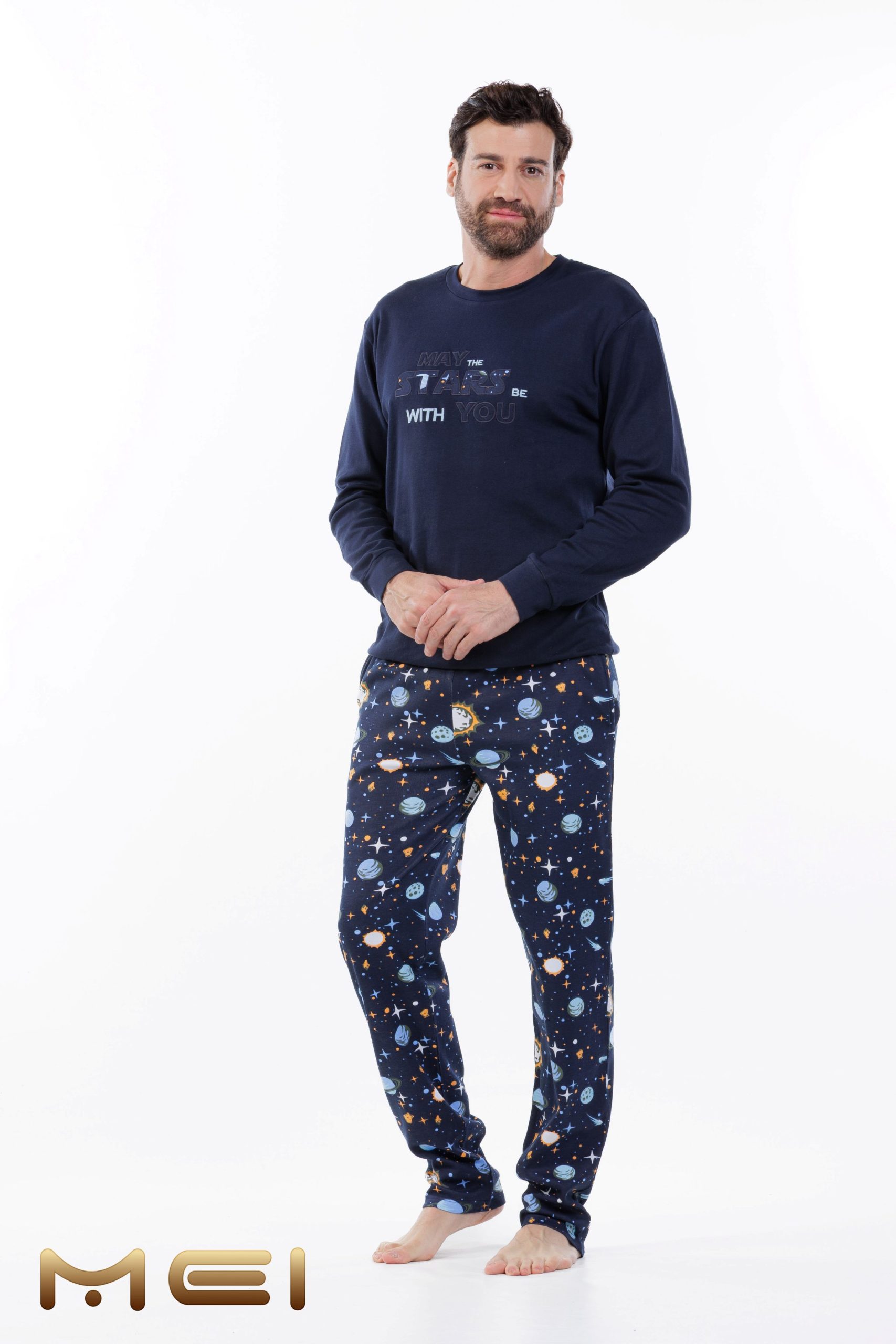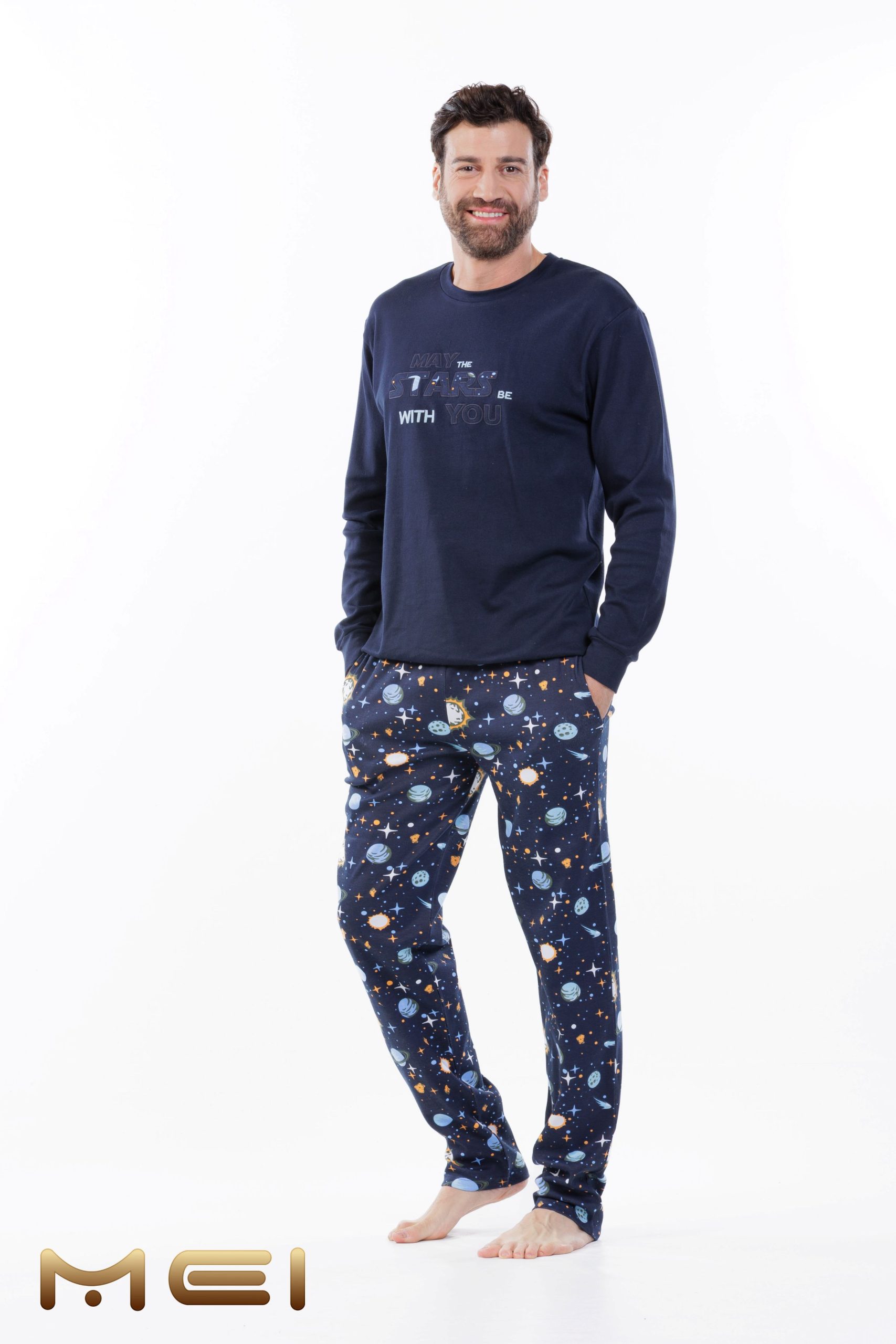 MEI Stars Μπλε Ανδρική Βαμβακερή Πυτζάμα με Τσέπες στο Παντελόνι