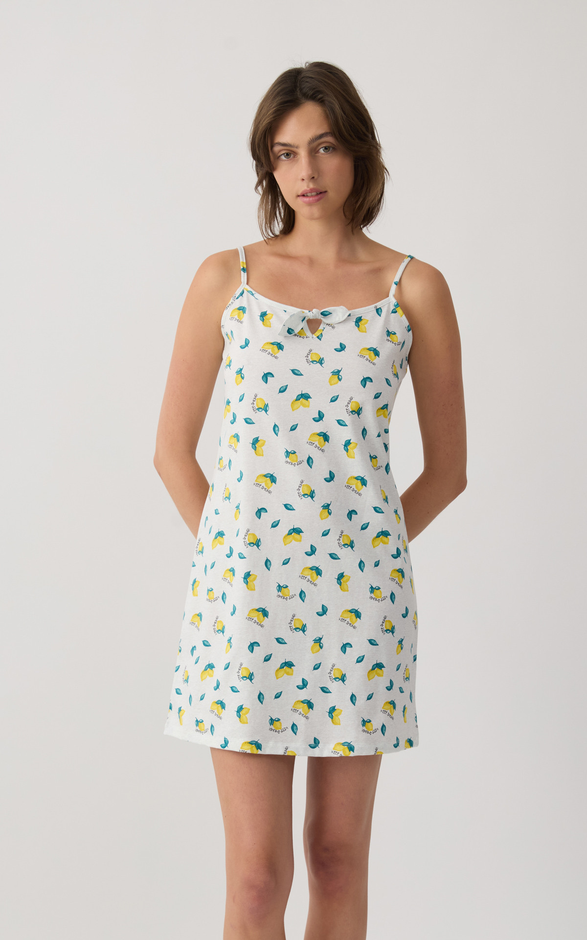 - Νυχτικιά με λεπτές μπριτέλες και κομψό καρό τύπωμα που χαρίζει φρέσκια και καλοκαιρινή αισθητική. Κατασκευασμένη από 100% βαμβακερό ύφασμα εξαιρετικής ποιότητας, προσφέρει απαλή αίσθηση και δροσερή άνεση κατά τη διάρκεια της νύχτας. Διαθέτει διακριτικό διακοσμητικό φιόγκο στο ντεκολτέ που προσθέτει μια θηλυκή λεπτομέρεια.