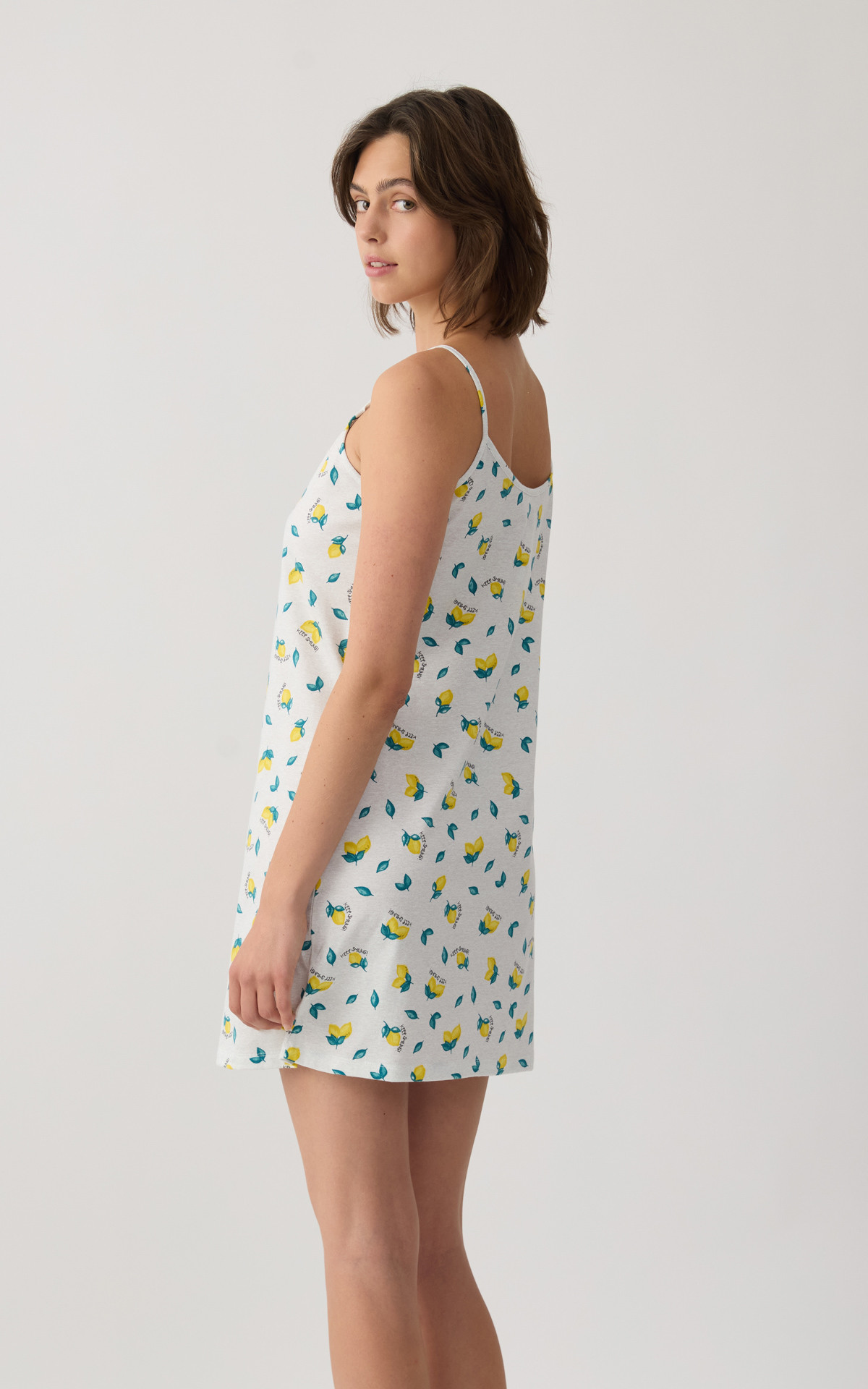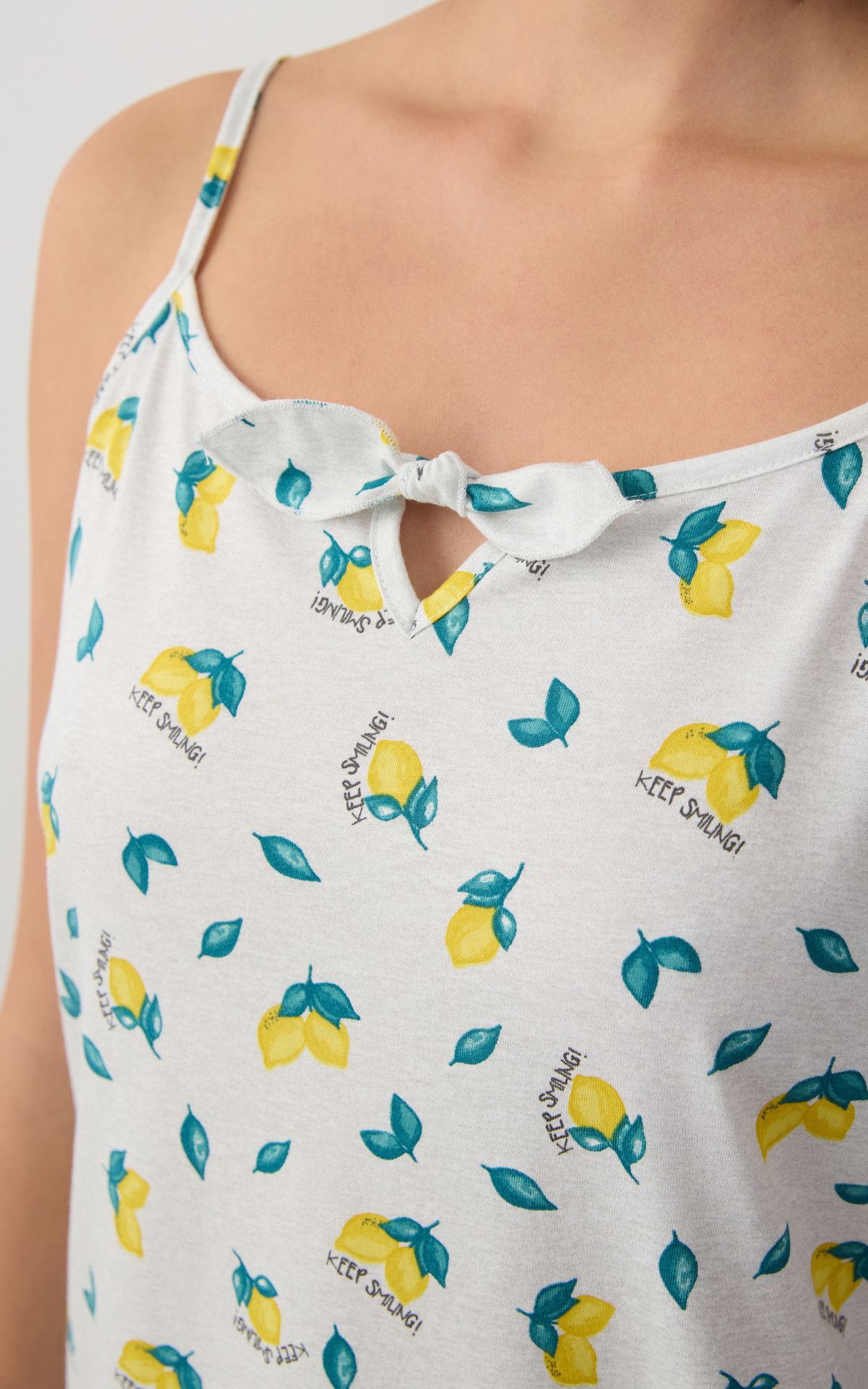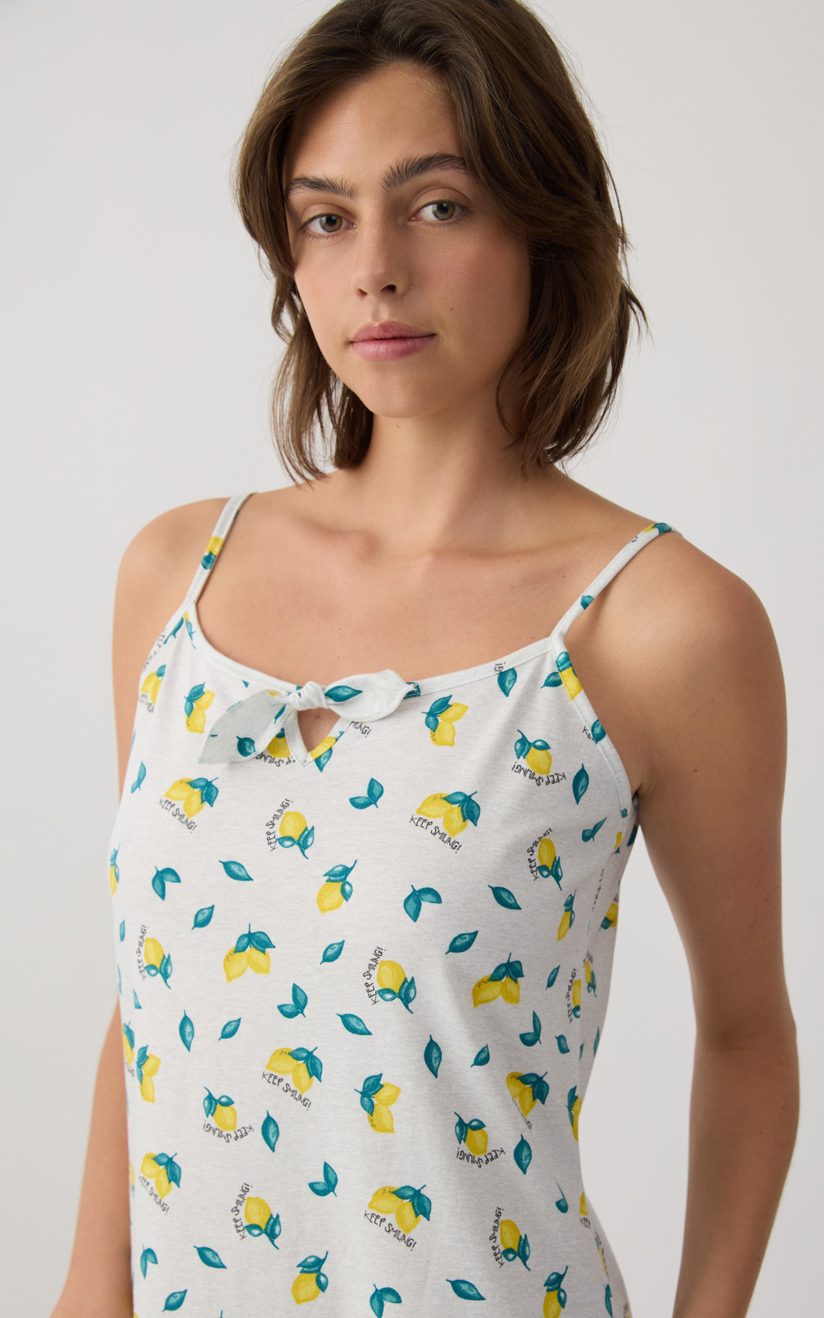 Minerva Lemon Γκρι Γυναικείο Βαμβακερό Νυχτικάκι με Λεπτή Τιράντα
