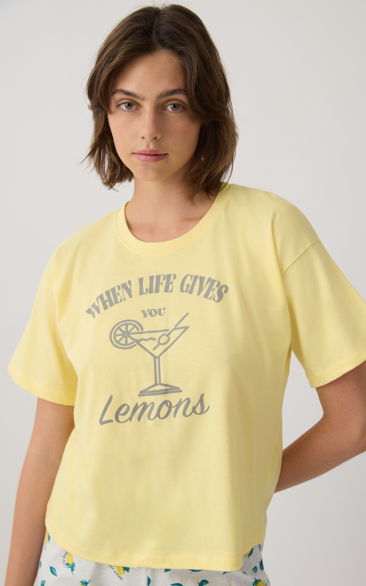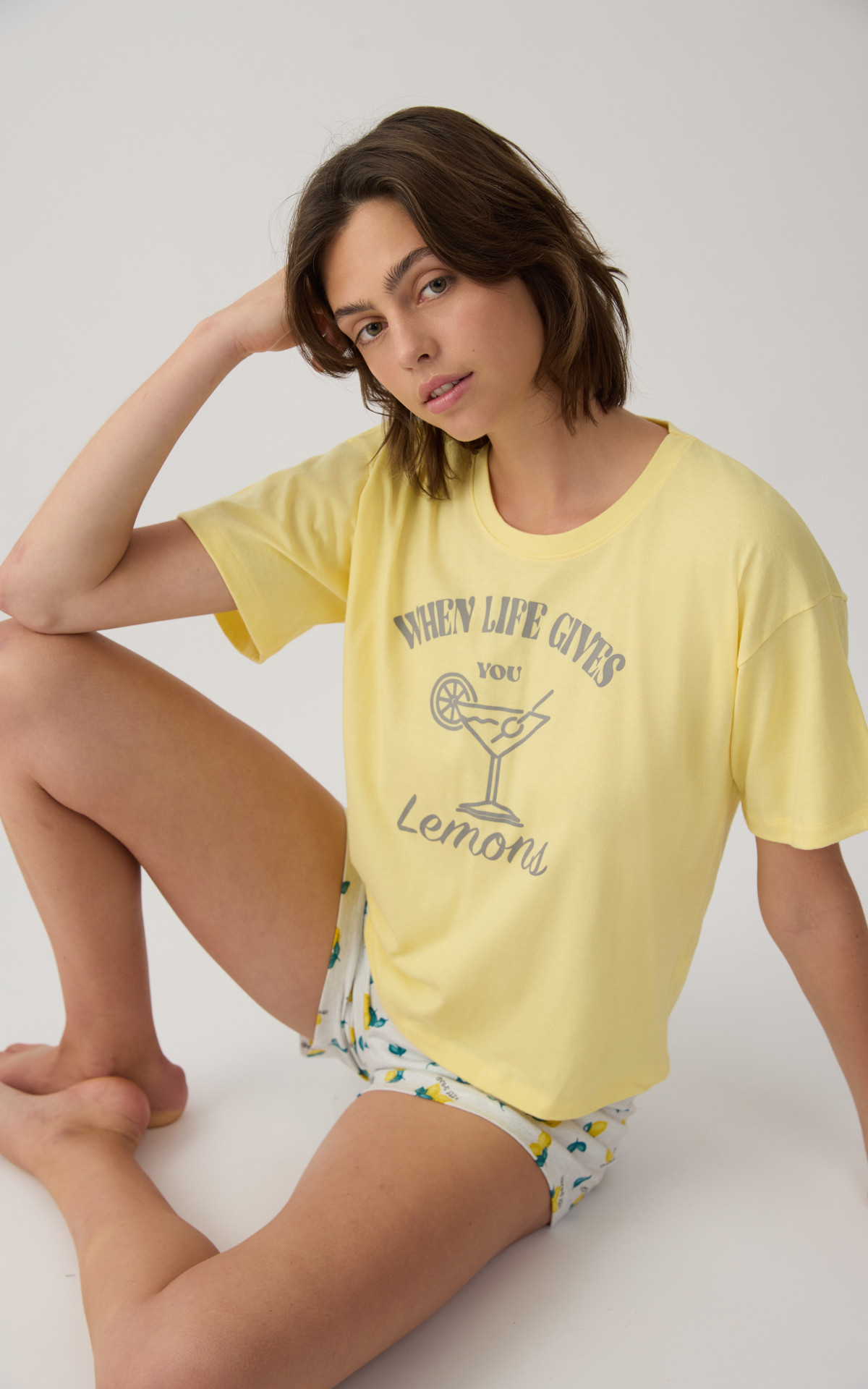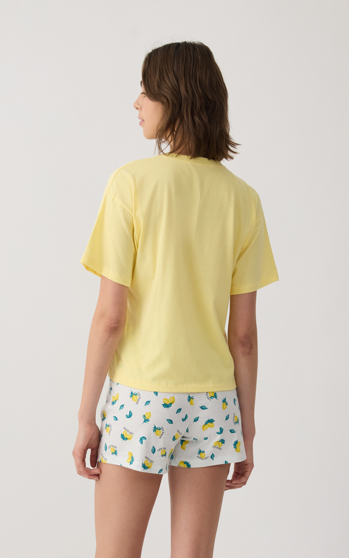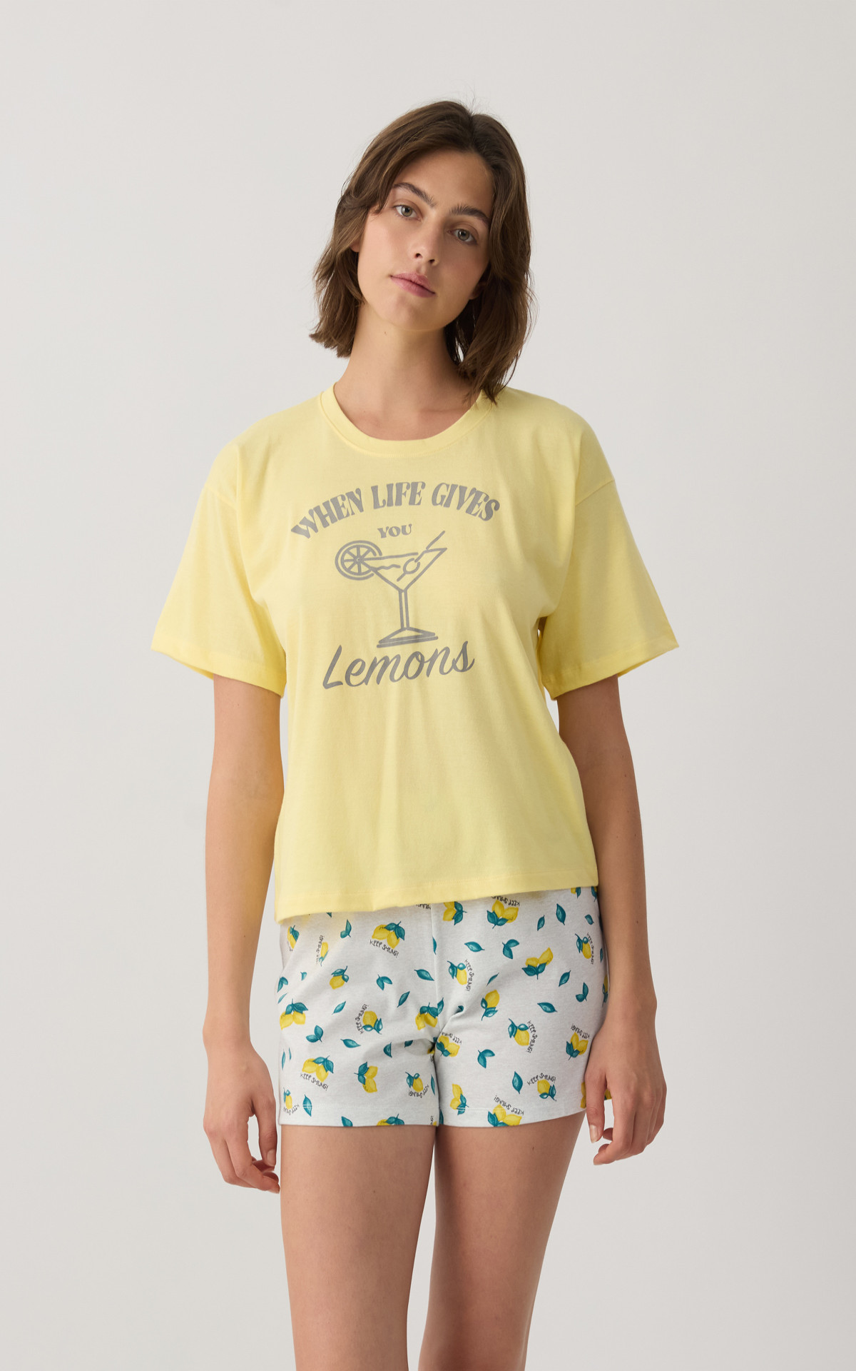Minerva Lemon Κίτρινη Γυναικεία Βαμβακερή Κοντομάνικη Πυτζάμα