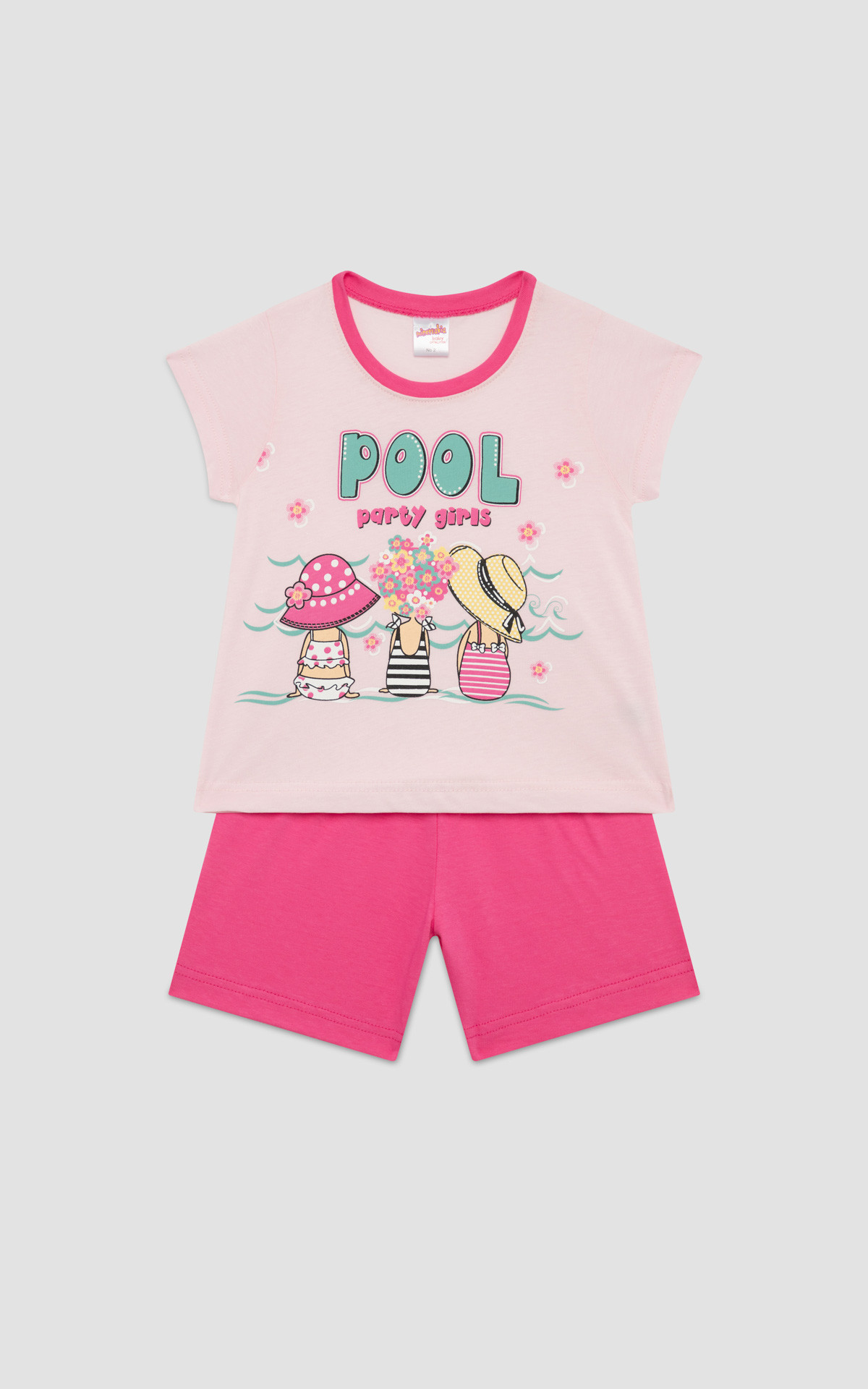 Minerva Pool Party Ροζ Κοντομάνικη Βαμβακερή Βρεφική Πυτζάμα