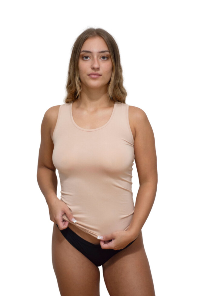 Nina Club Micromodal Μπεζ Γυναικείο Φανελάκι με  Φαρδιά Τιράντα