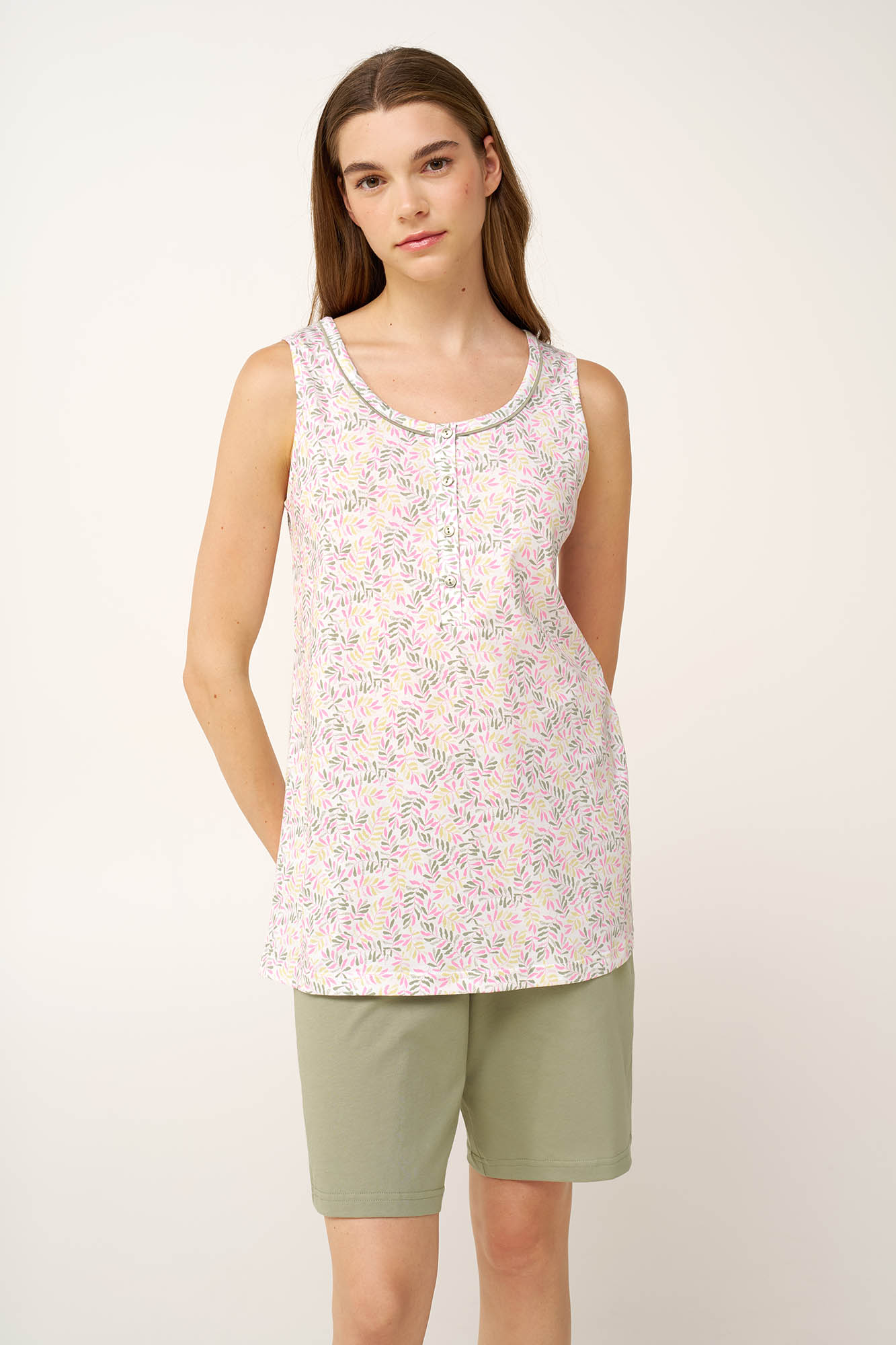 Vamp Μέντα Γυναικεία Βαμβακερή Πυτζάμα με Κουμπί