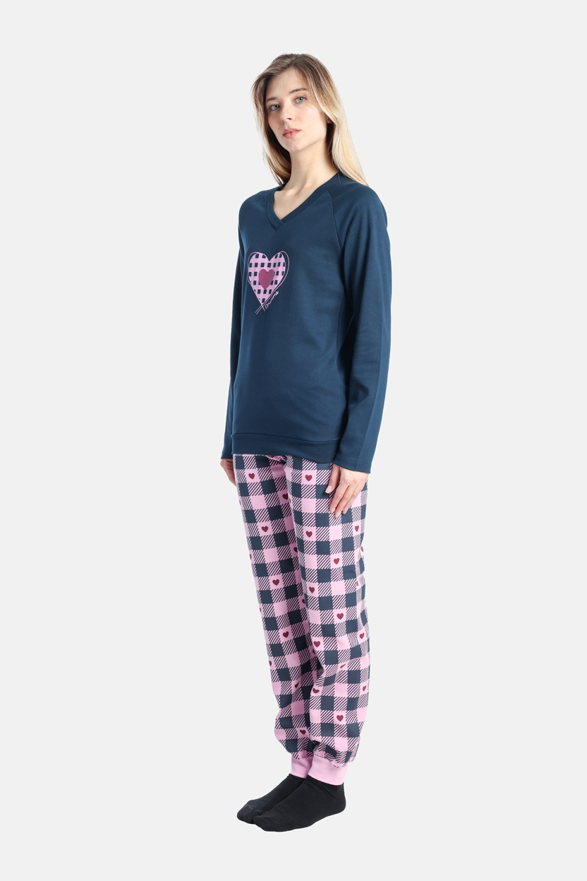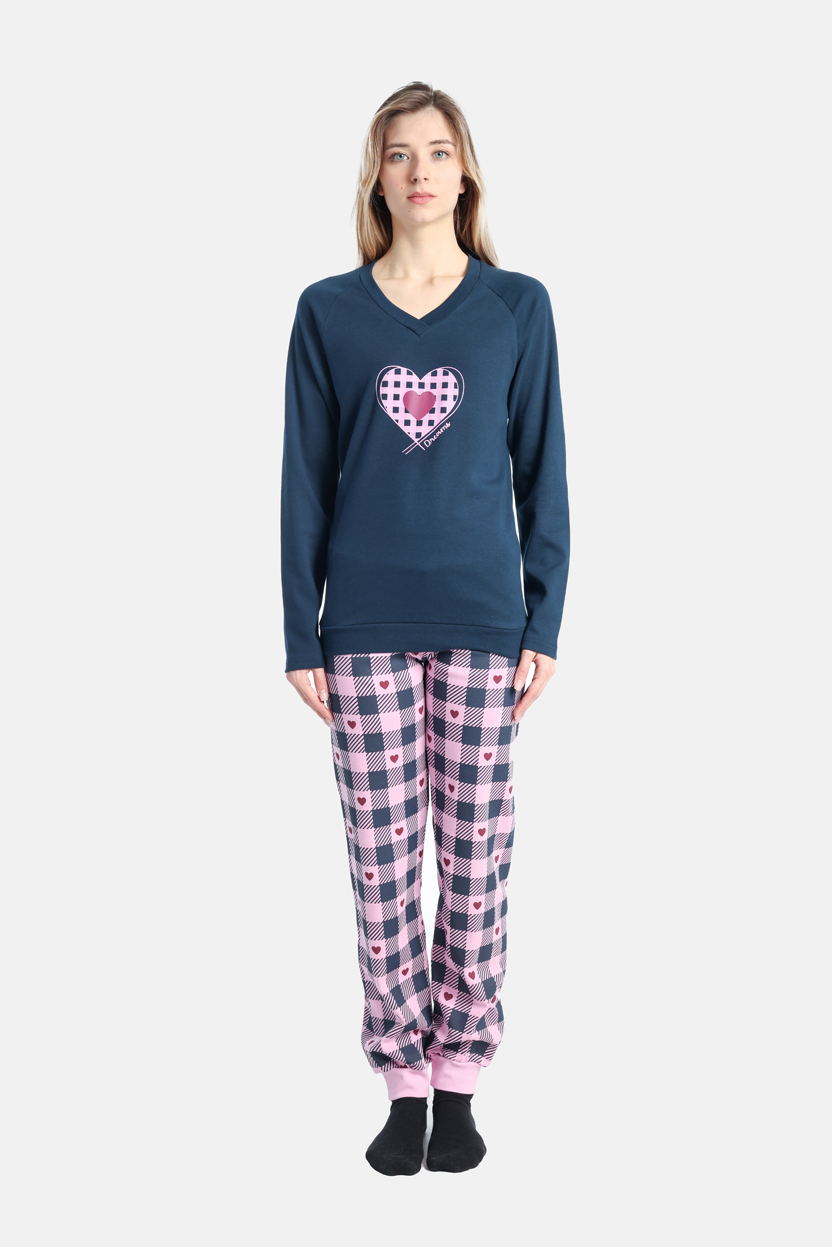 Dreams Ace of Hearts Μπλε Γυναικεία Πυτζάμα Βαμβακερή