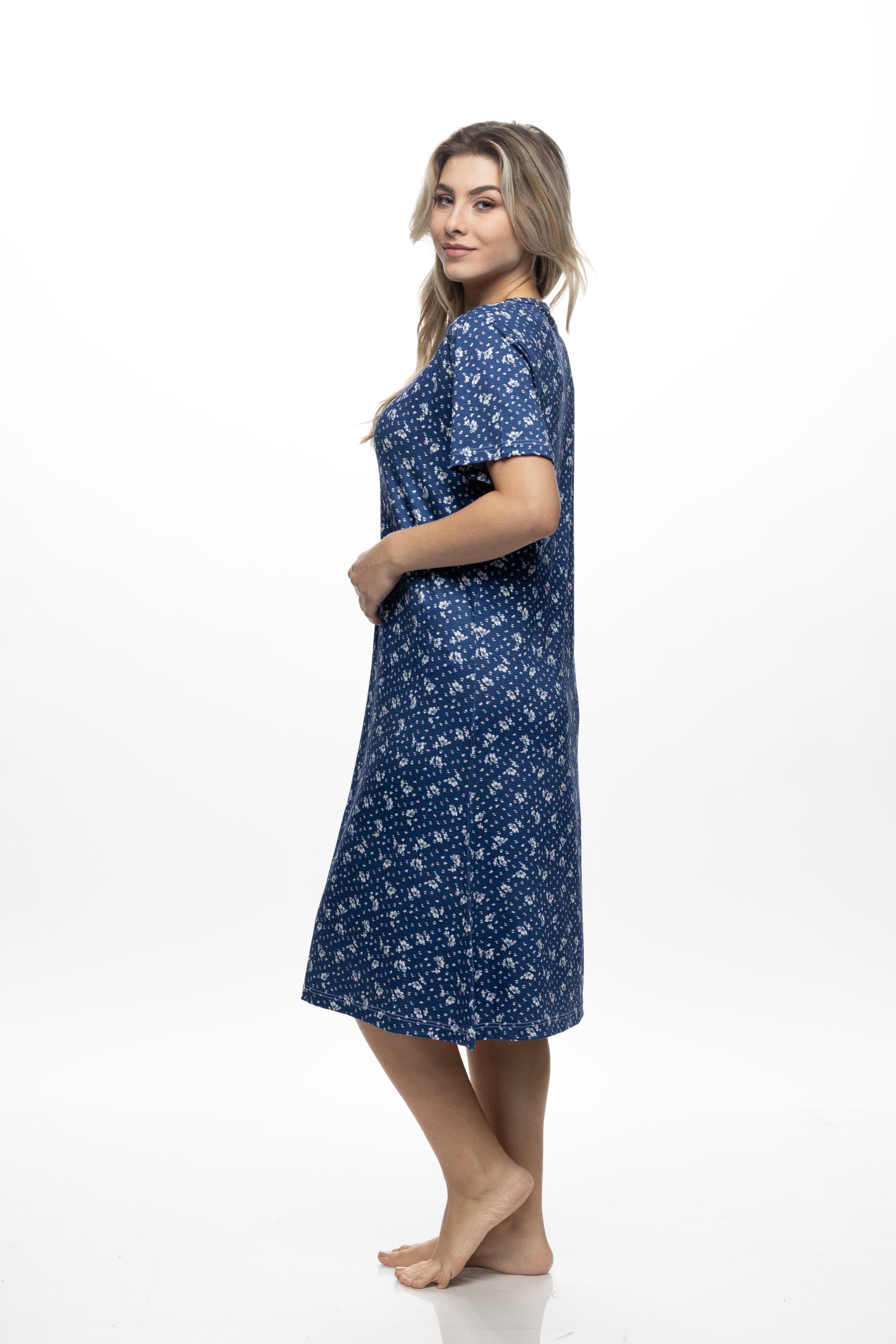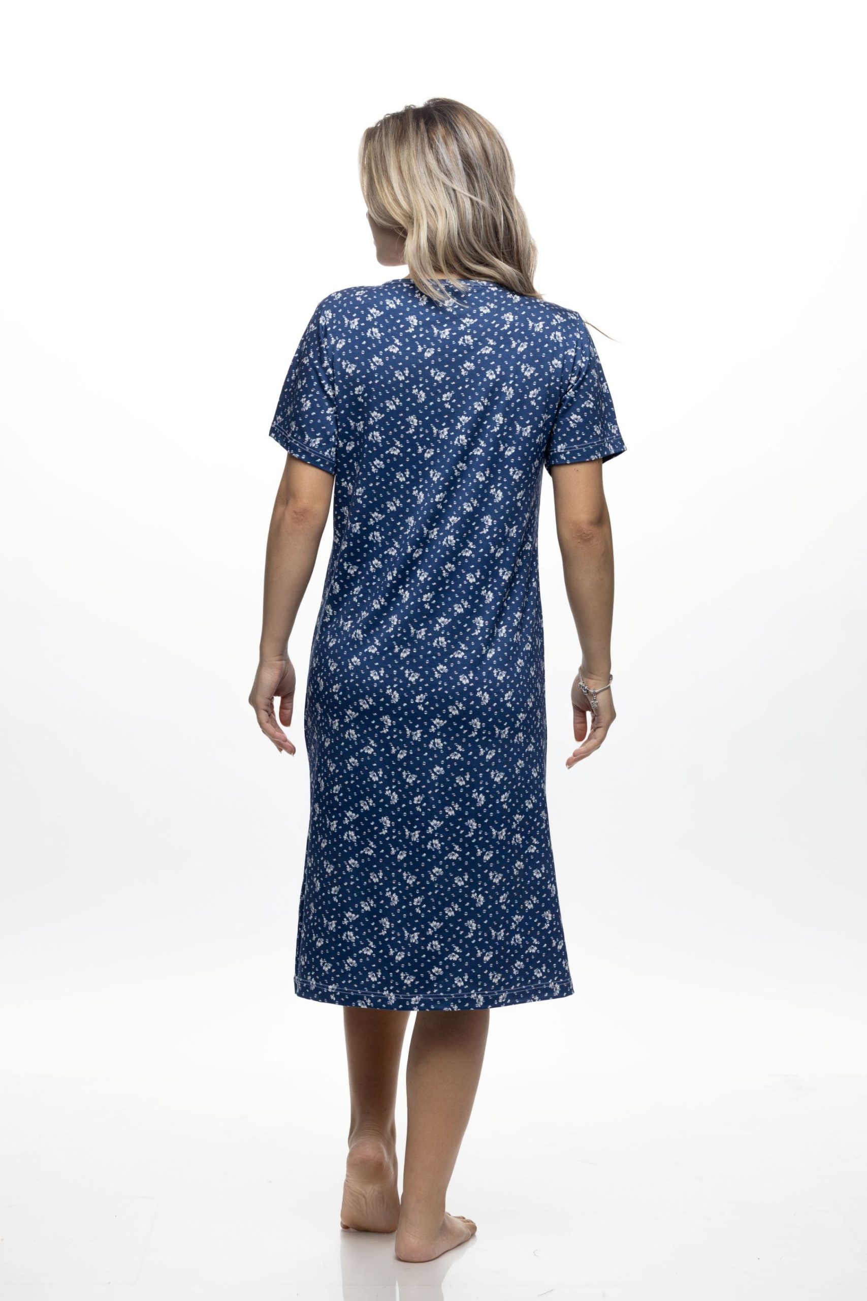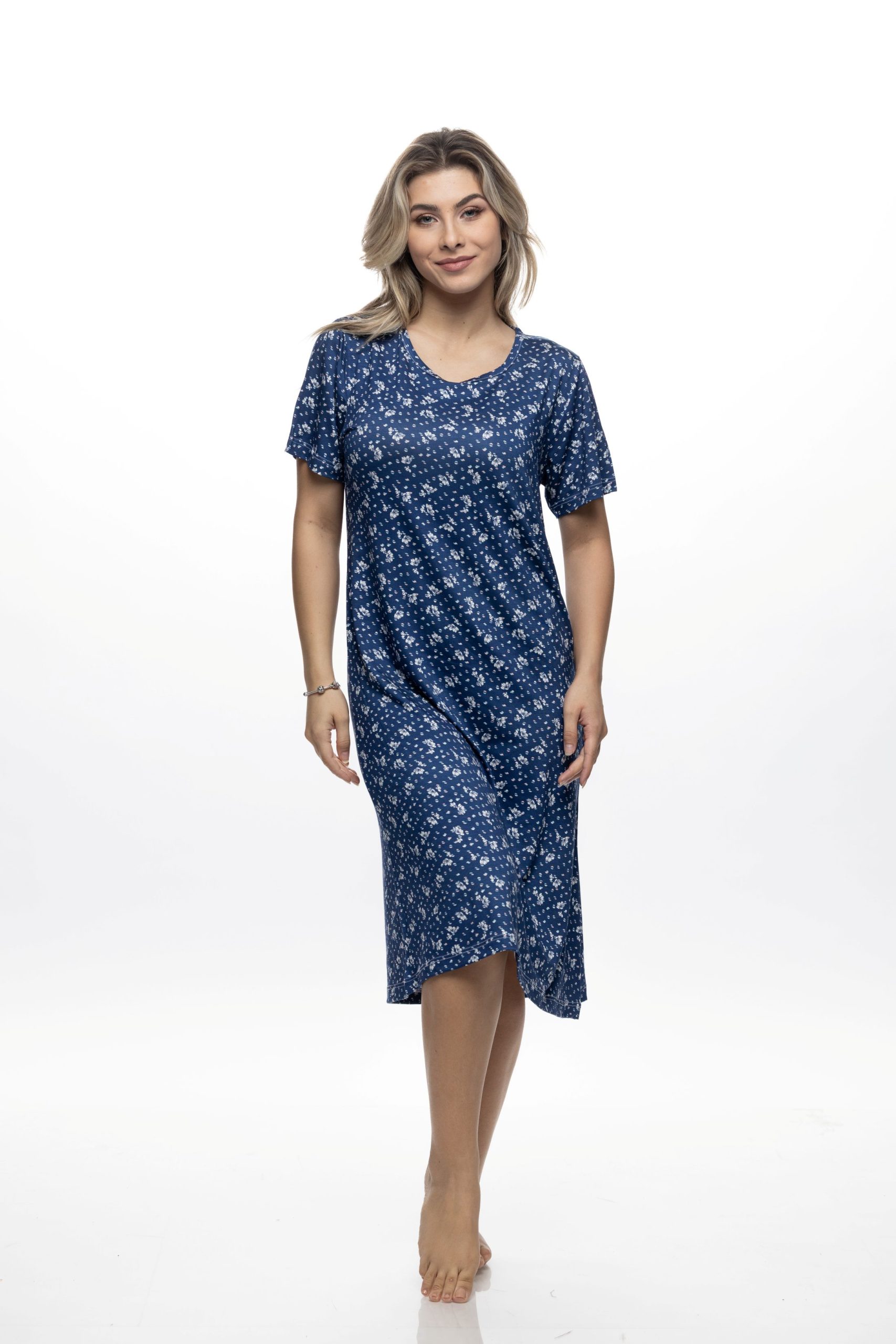 Galaxy Μπλε Viscose Γυναικείο Midi Φόρεμα με Κοντό Μανίκι