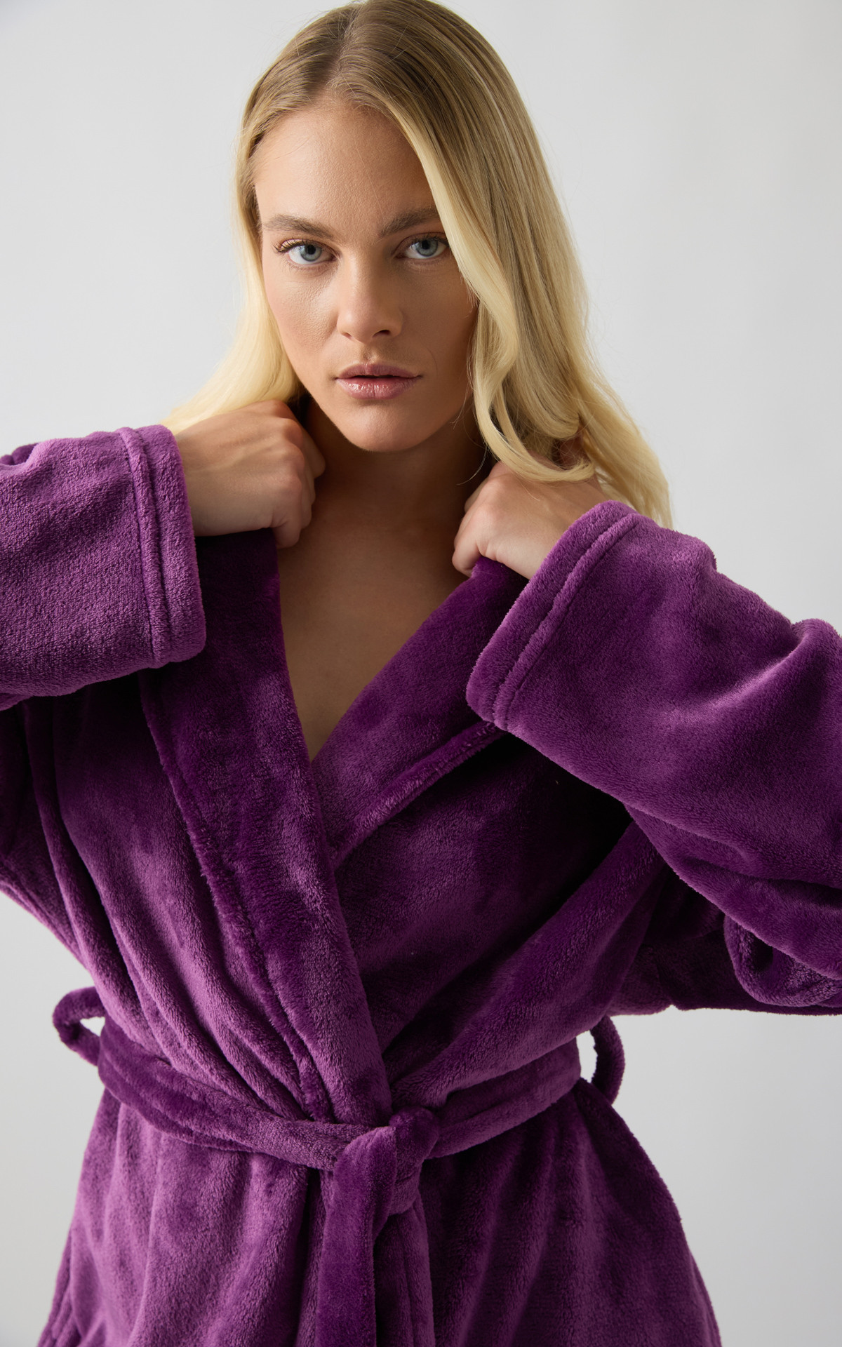 Minerva Μωβ Fleece Γυναικεία Ρόμπα