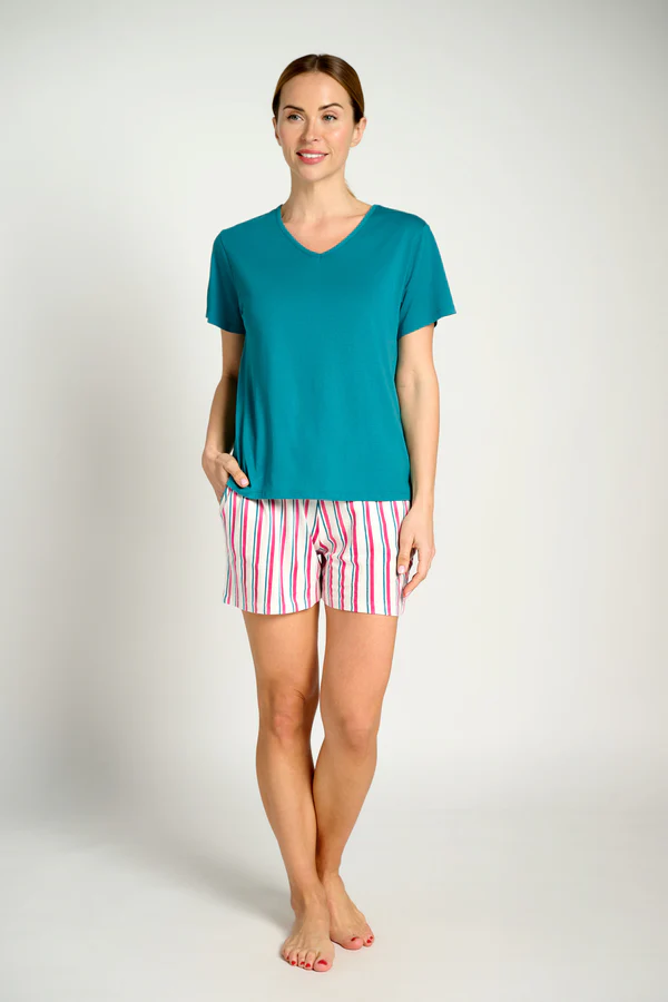 MUYDEMI Πετρόλ Γυναικεία Βαμβακερή Πυτζάμα με Κοντό Μανίκι
