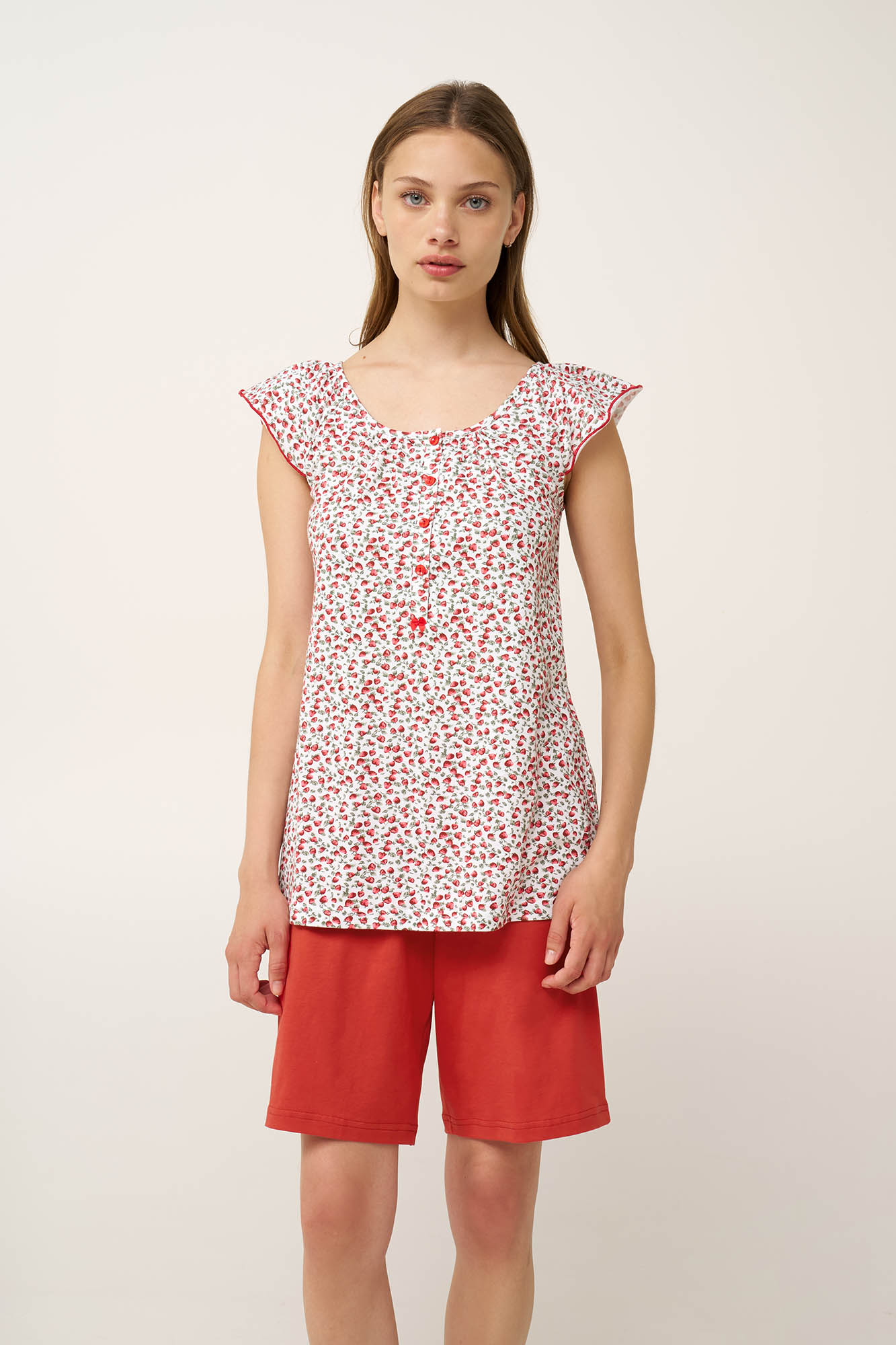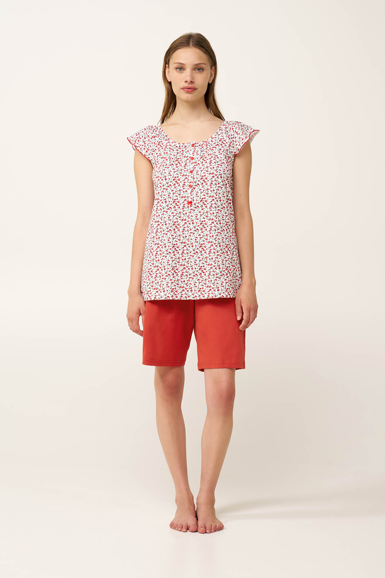 Vamp Κόκκινη Εμπριμέ Γυναικεία Βαμβακερή Πυτζάμα με Κουμπί