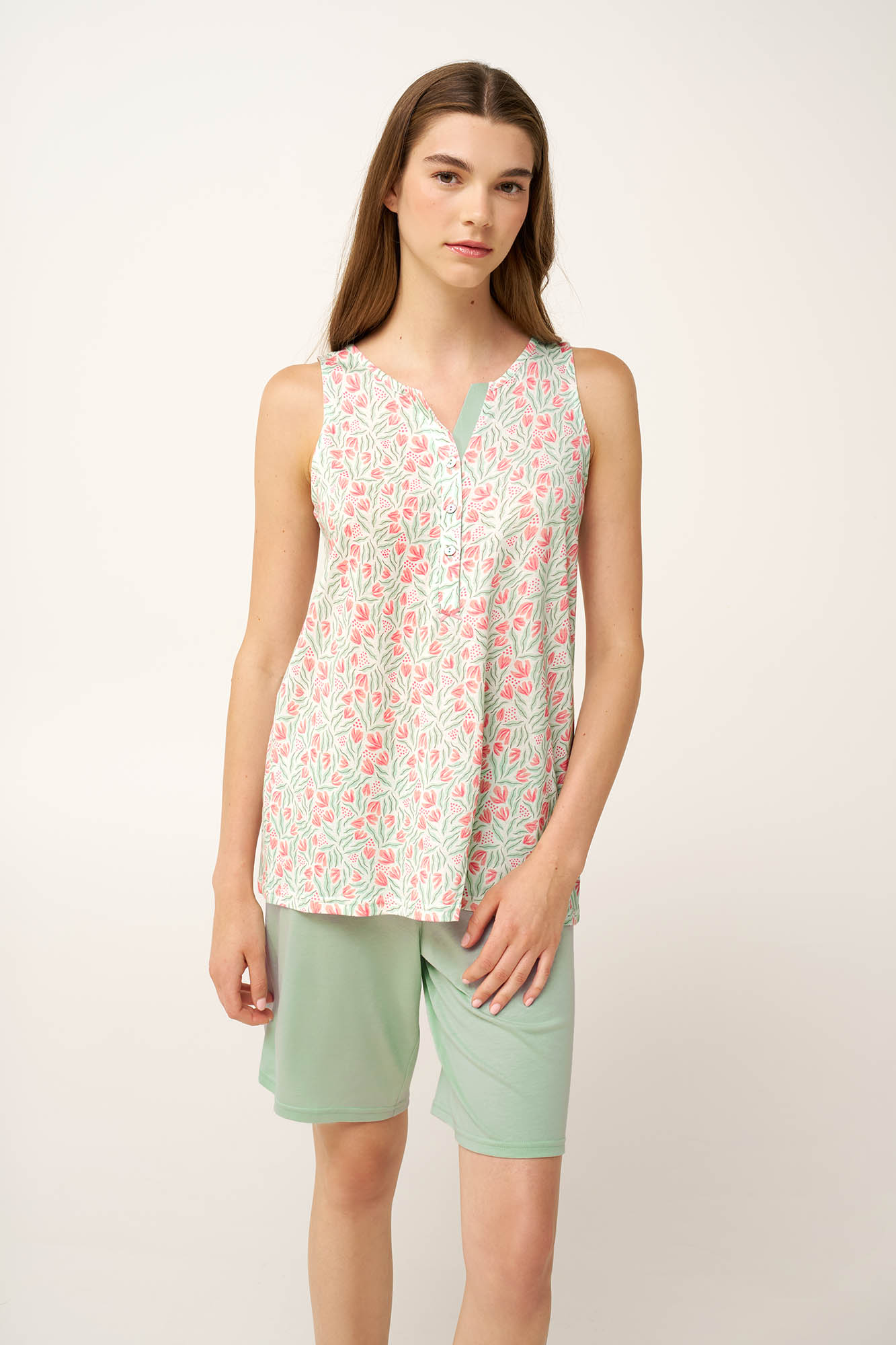 Vamp Μέντα Γυναικεία Βαμβακερή/Modal Πυτζάμα με Κουμπί