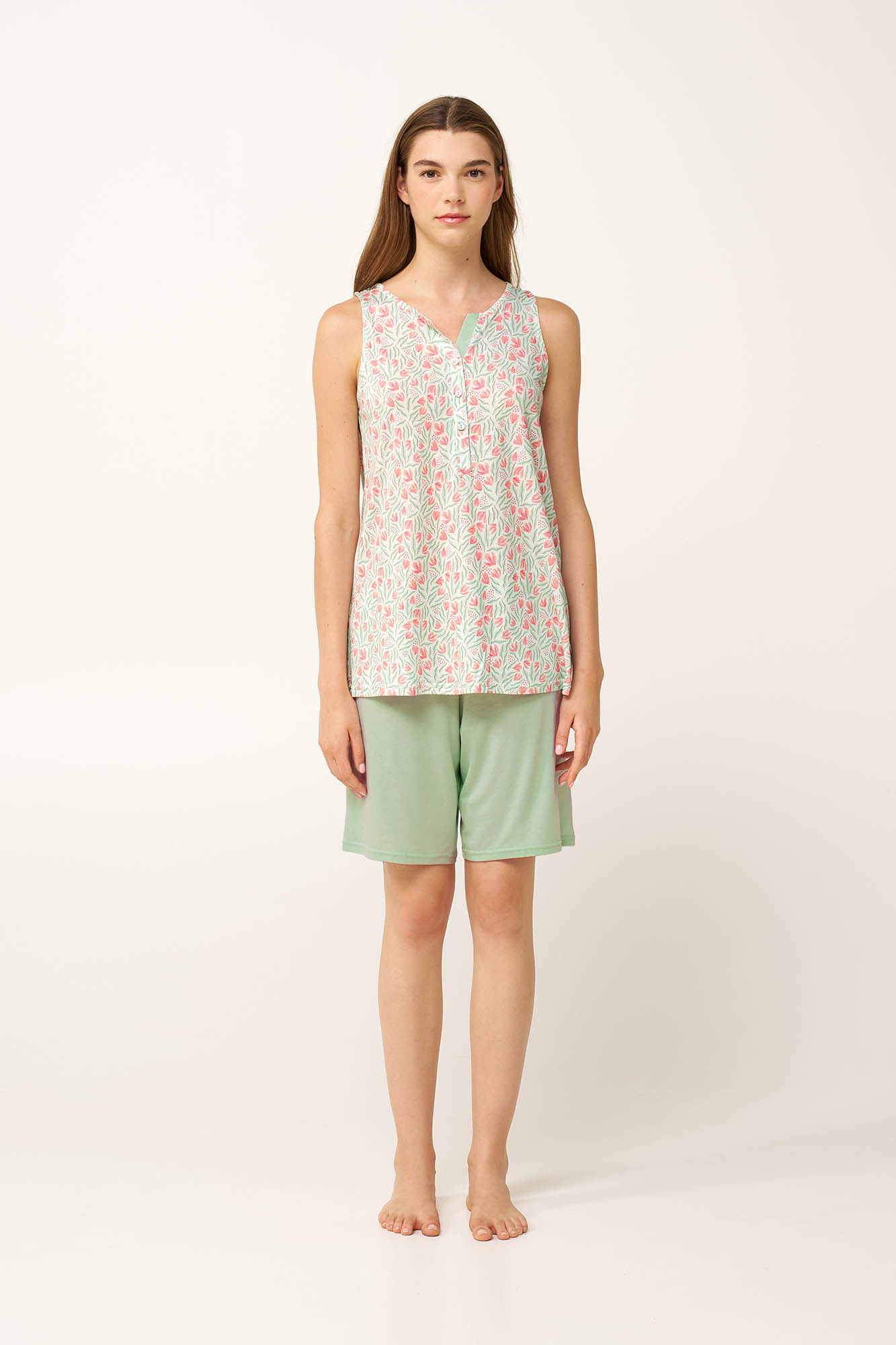 Vamp Μέντα Γυναικεία Βαμβακερή/Modal Πυτζάμα με Κάπρι Παντελόνι