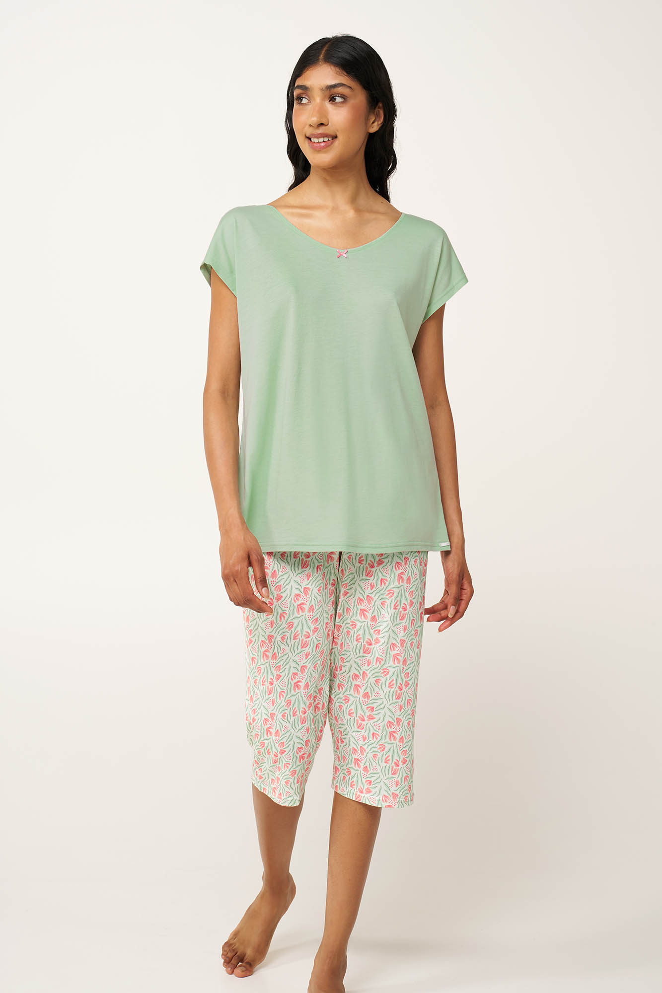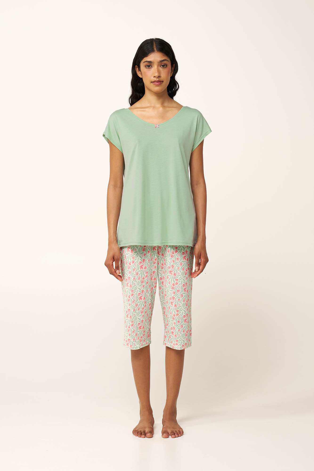 Vamp Μέντα Γυναικεία Βαμβακερή/Modal Πυτζάμα με Κάπρι Παντελόνι